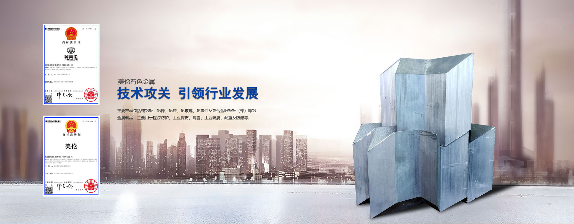 國內(nèi)極具優(yōu)勢(shì)的專業(yè)生產(chǎn)企業(yè),年產(chǎn)值逐年攀升。主要產(chǎn)品:純鉛板、鉛棒、鉛磚、鉛玻璃、鉛零件及鉛合金陽極板(棒)等鉛金屬制品。